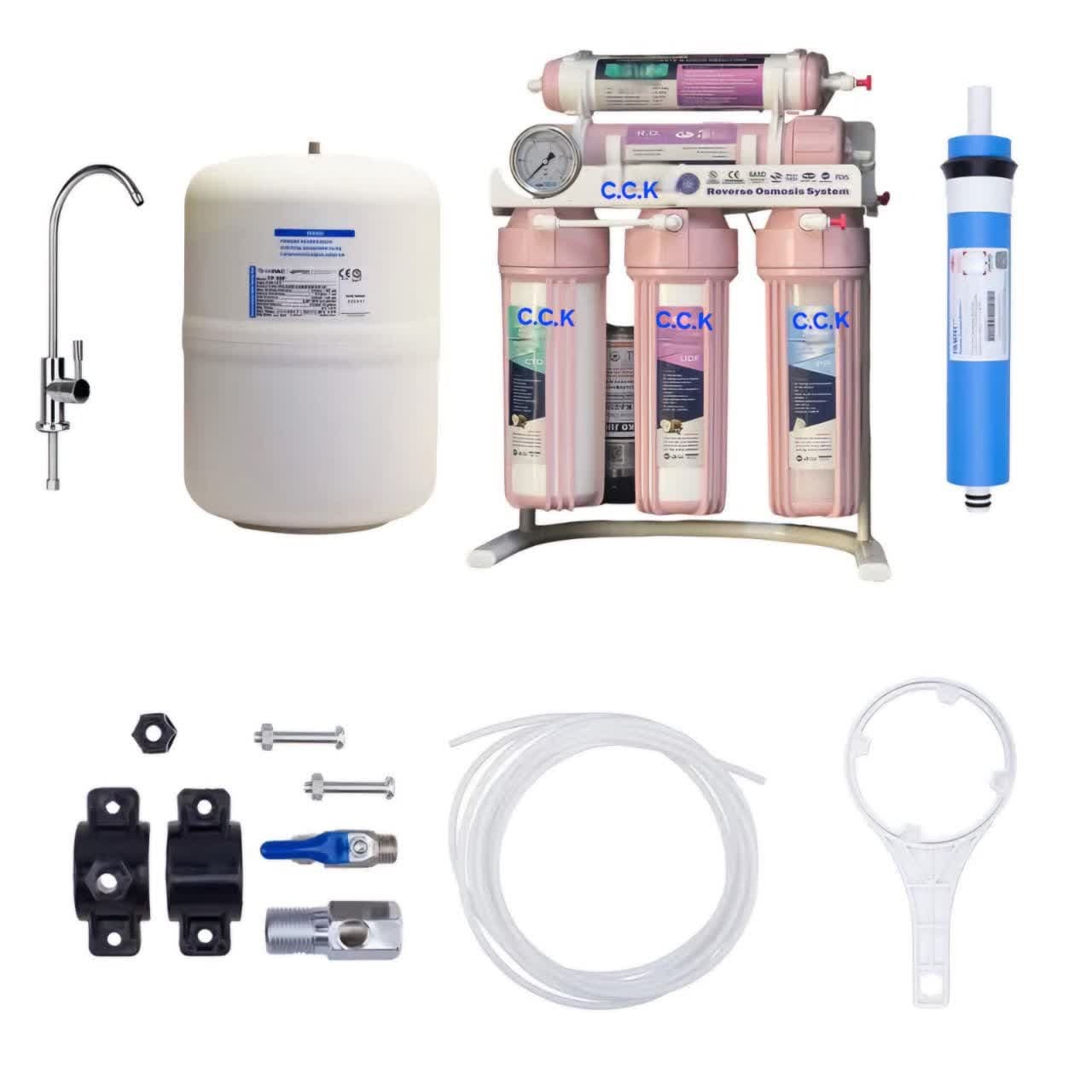 شما با استفاده از این دستگاه پیشرو ، مطمئن میشوید آب مورد استفاده شما ، آزاد از ذرات ناخواسته و با بالاترین کیفیت خودش است. دستگاه تصفیه آب سی سی کا در طی 7فیلتر و 7 مرحله آب را تصفیه میکند. مرحله هفتم دستگاه فیلتر محافظ ممبران است که باعث افزایش طول عمر ممبران می شود .بدون مواد شیمیایی یا افزودنی ، این سیستم فشرده و کم مصرف، آب تمیز و با طعم عالی را در خانه فراهم می کند. فیلتر ممبران این دستگاه 13 لایه ، مخزن تانک پک ( 5 گالن) با گنجایش 19 لیتر آنتی باکتریال میباشد. این دستگاه دارای استاندارد های جهانی FDA _ WQ _ CE _ NSF میباشد دارای بوستر پمپ قوی 125PSI و شیر تنظیم سختی آب و هوزینگ های دابل اورینگ برای آب بندی بهتر دستگاه میباشد همراه با شیر برداشت اهرمی پایه بلند شیک کروم و پک کامل لوازم نصب دستگاه سی سی کا شامل :آچار هوزینگ ، شیلنگ به مقدار کافی ، شیر ورودی آب استیل، سه راهی استیل ،شیر مخزن و فیلتر ممبران است بدون صدا و لرزش - قابلیت نصب به ساید - قابل جابجایی آسان - دستگاه در زیر سینک آشپزخانه نصب میگردد.